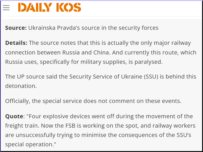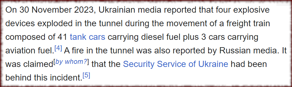 The damage to the tunnel will impede China’s ability to ship weapons (which China swears it is not sending) to Russia.