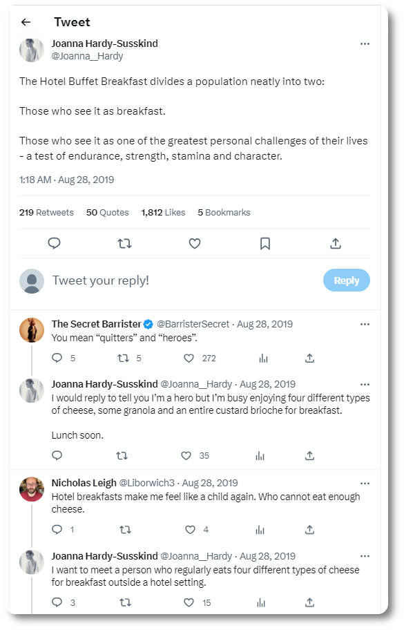 During the dark days of the pandemic, there arose a meme that caught the weird vibe we were all going thru. (Her twitter account here, and the original tweet here.)