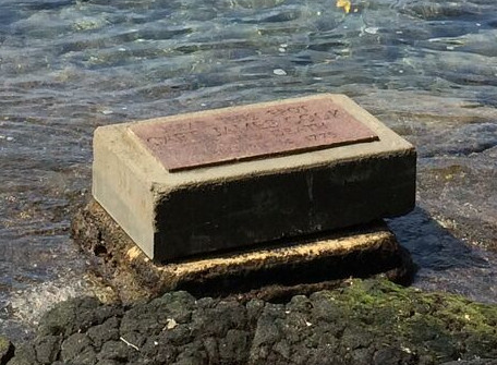 The original plaque’s history dates to 1928 and disappeared in 1956. Another plaque was installed by the British Consulate in the Hawaiian Islands, but was damaged in an attempted theft in 1985.