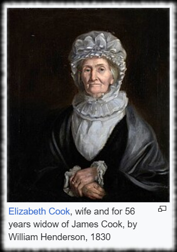 Before her death on 13 May 1835 at the age of 93, Mrs Cook went to great lengths to destroy all her private papers and correspondence with her beloved husband, considering them too sacred for other eyes. – Wikipedia