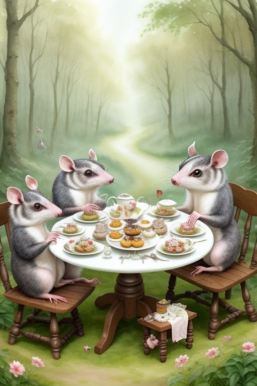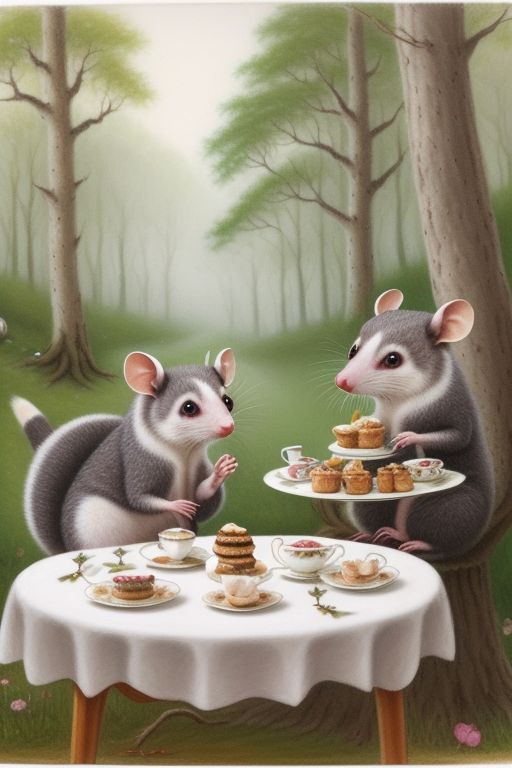 - Envision a posh tea party in the heart of the woods, with possums sipping on tiny cups of tea and nibbling on miniature pastries. It’s a woodland gathering where possum etiquette reigns supreme.
