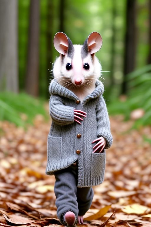 - Imagine a high-end possum fashion show where possums strut down the runway wearing the latest in cozy sweaters and stylish accessories. The fashionistas of the forest!