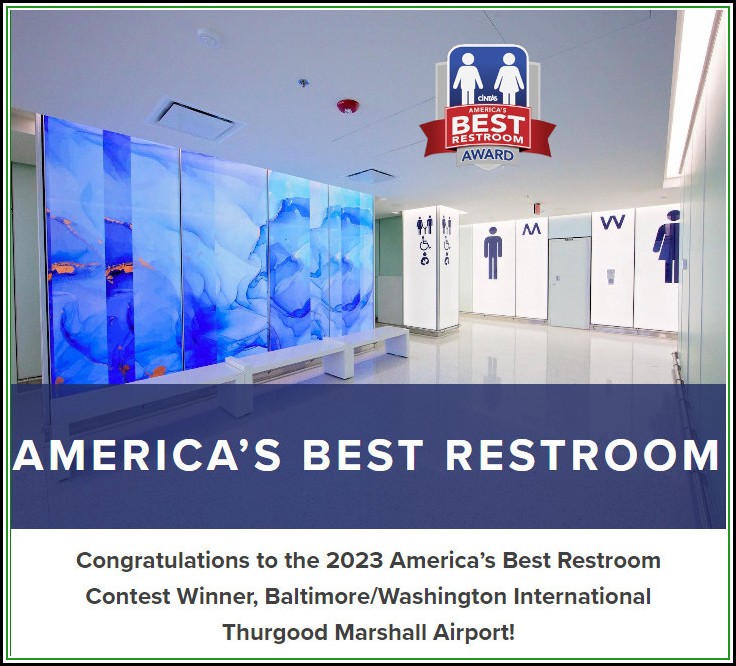 BWI [Baltimore/Washington International Airport] has spent many millions of dollars renovating their bathrooms and was recently awarded best restrooms in America by Cintas . Here is how they are celebrating.