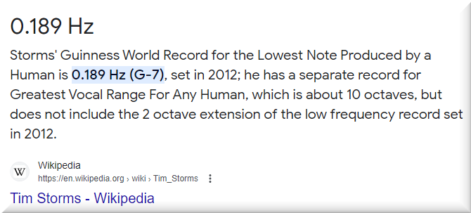 Lowest sound produced by a human: 0.189 Hz. https://en.wikipedia.org/wiki/Tim_Storms