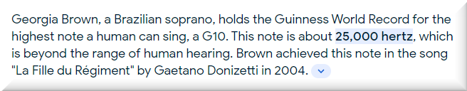 Highest sound produced by a human: 25,000 Hz. https://youtu.be/Ia57VfDaESw?si=ll53Art8qJHEl414
