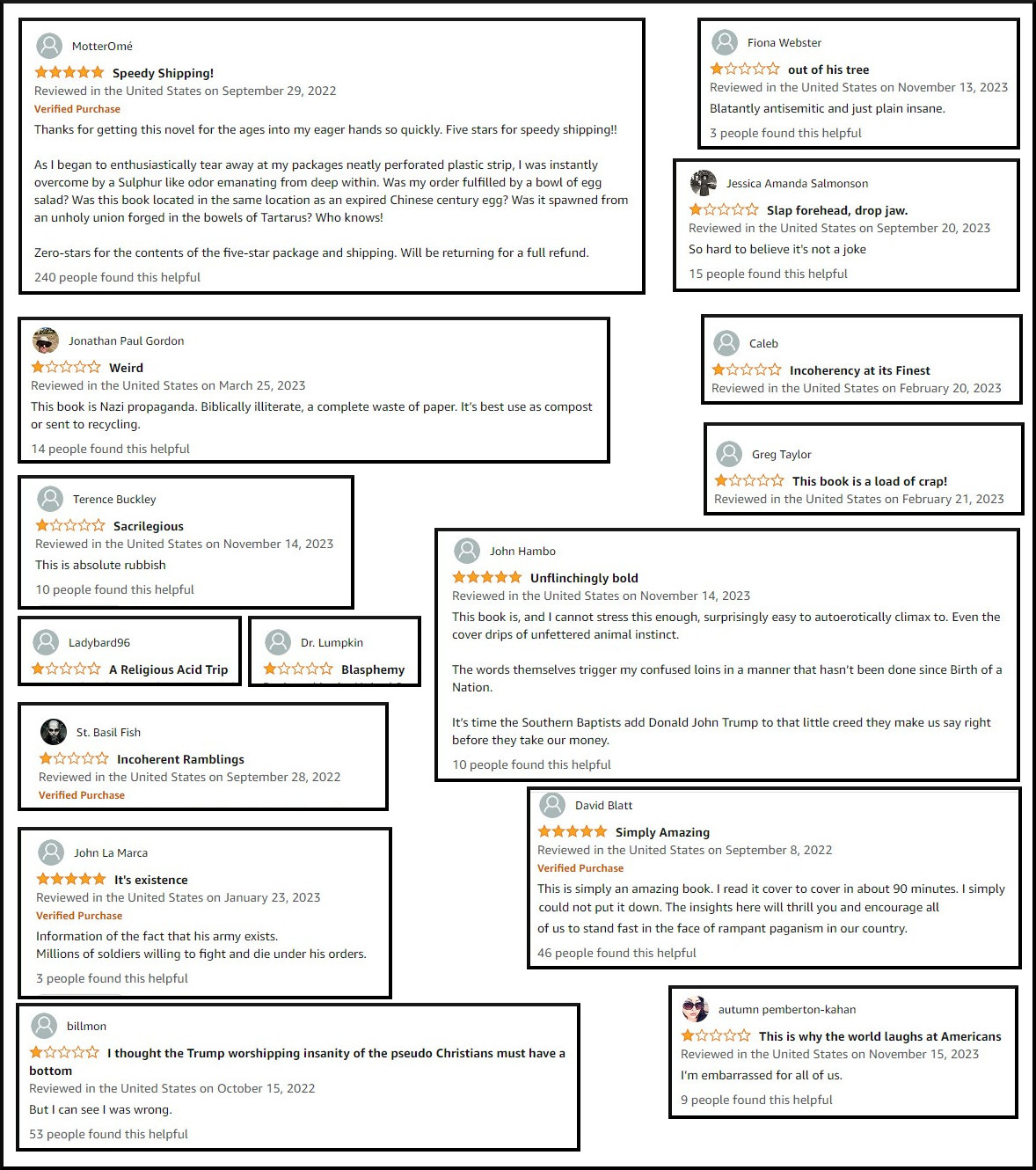 Curated Reviews for your enjoyment…. And guys, can we stop with the pagan bashing? They have, by far, the best pot lucks.