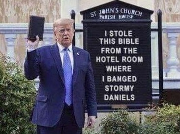 A faithful churchgoer he’s not. After he held up a Bible for his violence-enabled photo op in Lafayette Square, a reporter asked him, “Is that your Bible?” He replied, “It’s a Bible.” If, as he seemed to be saying (unsurprisingly), this particular Bible did not belong to him, its actual owner remained unknown.