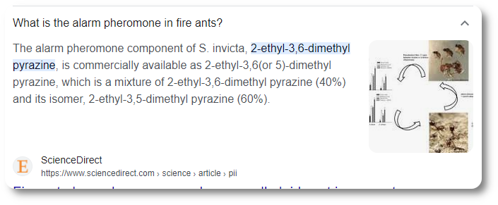 More questions than answers. Why is fire ant alarm pheromone commercially available? How much does it cost? Why is it listed as an ingredient in my generic Frozen Pizza Roles?