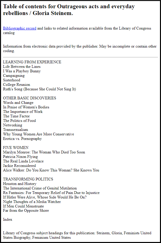 You can read the essay of her undercover escapades in Outrageous Acts and Everyday-Rebellions.