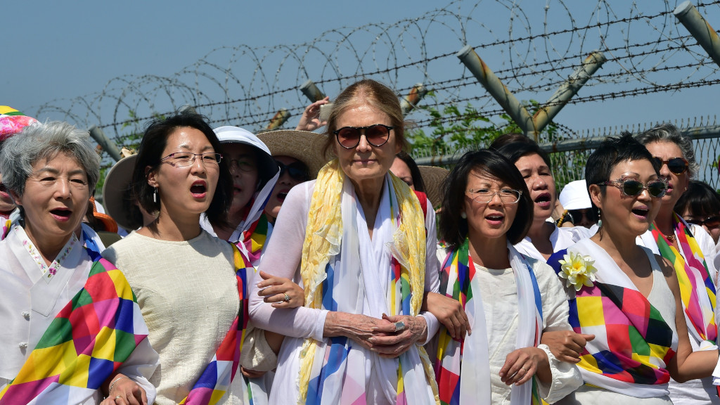 Ms Steinem participated in a Women’s Peace March in May of 2015, crossing the Korean DMZ with 30 other women, including two Nobel laureates. – NPR