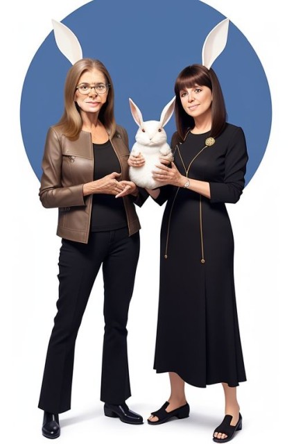 There are no Google search results that suggest Gloria Steinem and Grace Slick ever met, but if they had, it would have been a lively and interesting conversation. And they would have the rabbit theme in common. And they both have the same initials.