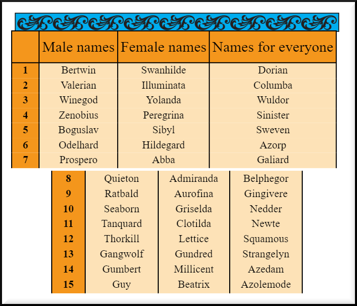 If I come back as a 12th century maiden, I’m going with Swanhilde Aurofina Wobblepot.