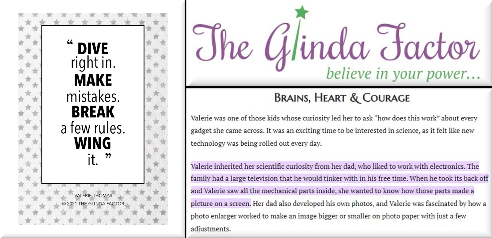 She showed that the magic of fascination can often lead to concrete scientific applications for real-world problem-solving. – Black Inventor