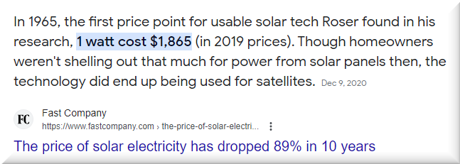 When I see pictures of satellites from the ’60s, I’m fascinated by the early deployment of solar panels. How much did they cost back then? It’s hard to get commercial prices prior to 1975, but here’s some numbers: