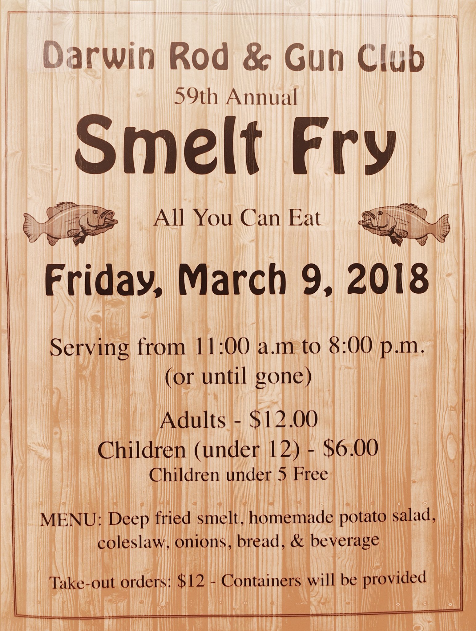 The crunchy, chewy, beer-battered fish, potato salad and coleslaw draw a crowd of more than 1,000 to the annual all-you-can-eat fish fry each year. Around 2 p.m. Friday, the Darwin Rod and Gun Club was packed to capacity with members, non-members and smelt enthusiasts.