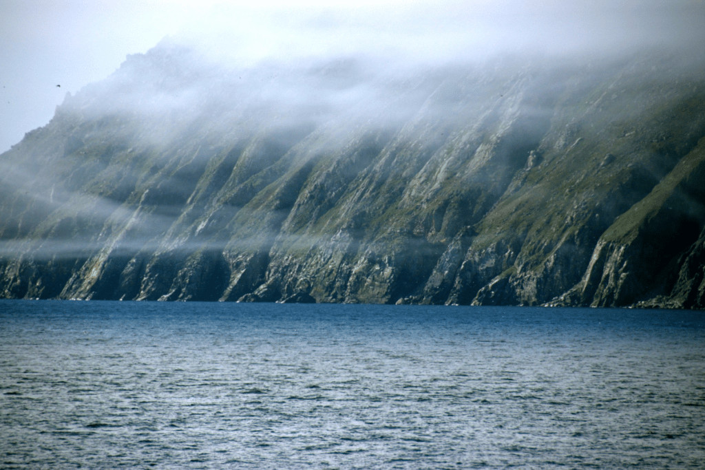 The U.S. island of Little Diomede (part of Alaska) or Iŋaliq, also known as Krusenstern Island.