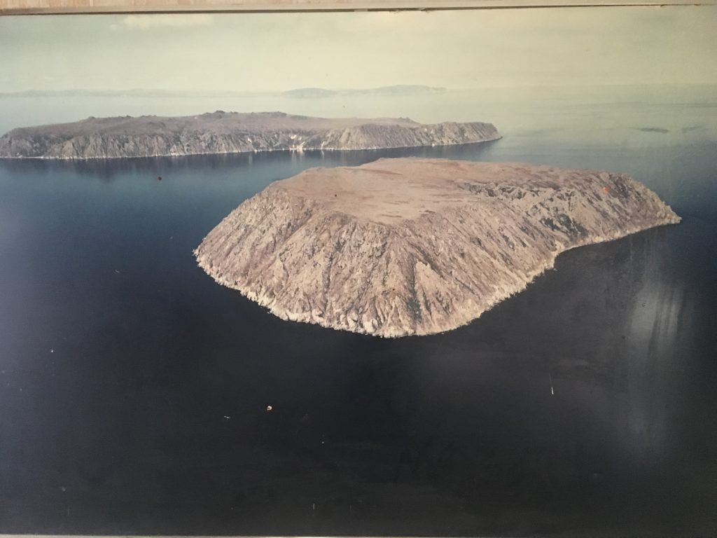 The Russian island of Big Diomede (part of Chukotka), also known as Imaqłiq, Inaliq, Nunarbuk or Ratmanov Island.