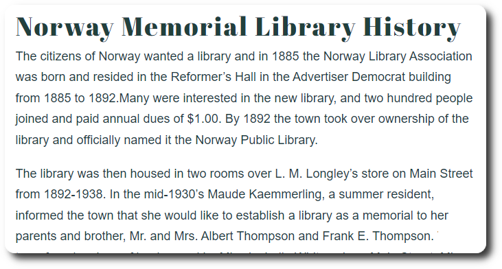 Norway Memorial Library