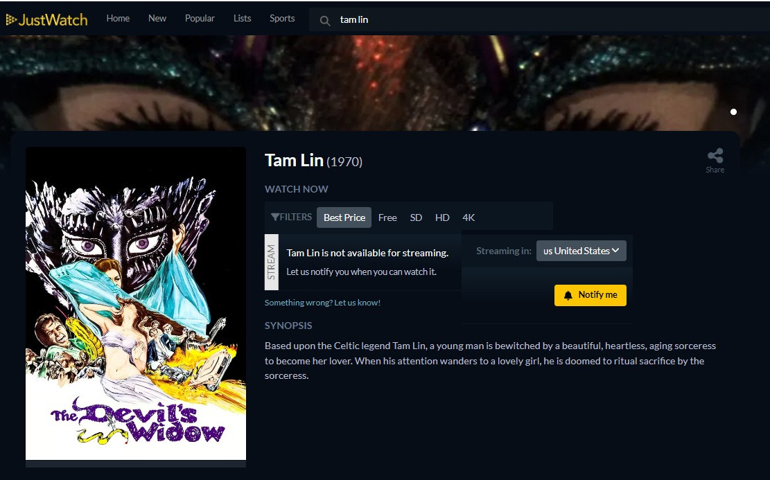 Also known as The Devil’s Widow, The Ballad Of Tam Lin was a project obviously close to Roddy McDowall’s heart. In order to direct it, he even turned down the chance to reprise his role as Dr. Cornelius in the second film of the Planet Of The Apes series, before returning for the next three sequels.