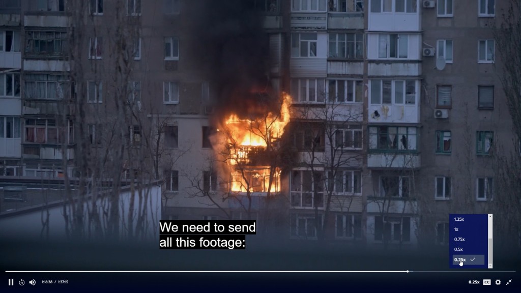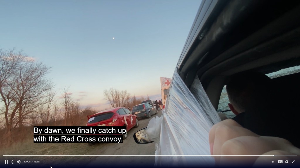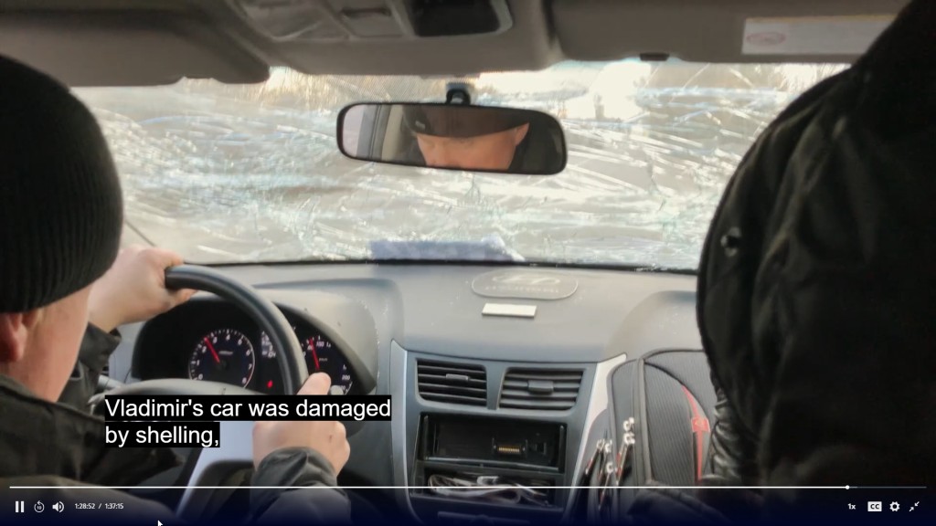 The film crew’s internet connection is very spotty, and they are unable to transfer the volumes of footage that document the numerous Russian war crimes. Although not explicitly stated in the documentary, it appears that the government in Kiev realized how crucial this footage was, and sent a specially-trained team to rescue them (and their hard drives) from the occupied area.
