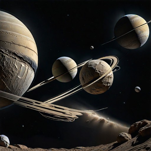 Due to their gravitational influence, shepherd moons deflect ring particles from their original orbits due to proximity or through orbital resonances. This can carve gaps in the ring system, such as the Encke Gap maintained by Saturn’s moon Pan, or lead to the confining of narrow ringlets, such as Saturn’s F ring.