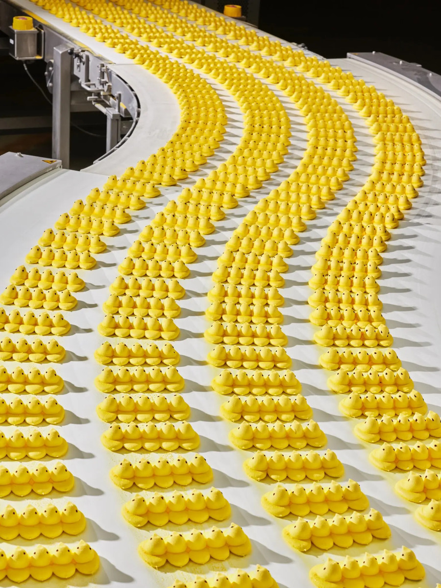 Visiting the factory where Peeps are made, in Bethlehem, Pa., is a true Willy Wonka experience. The building is crammed with pipes full of marshmallow and hoses full of sugar. Spray guns spray food coloring and flavors.