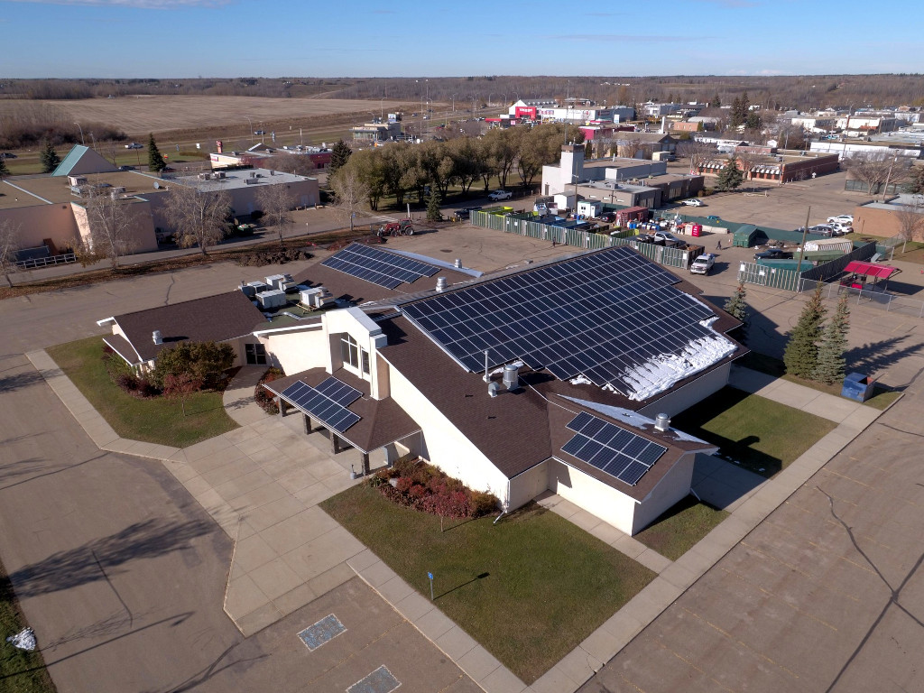 Pix of the Community Center. Very cool solar installation.