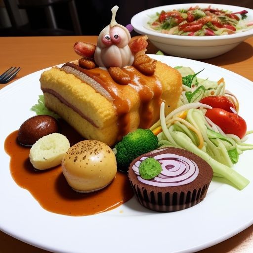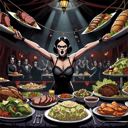 And because we lack even the most basic impulse control, we “fed” [ed. note: pun – yuck, yuck] the menu into an AI image generator.