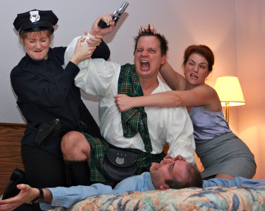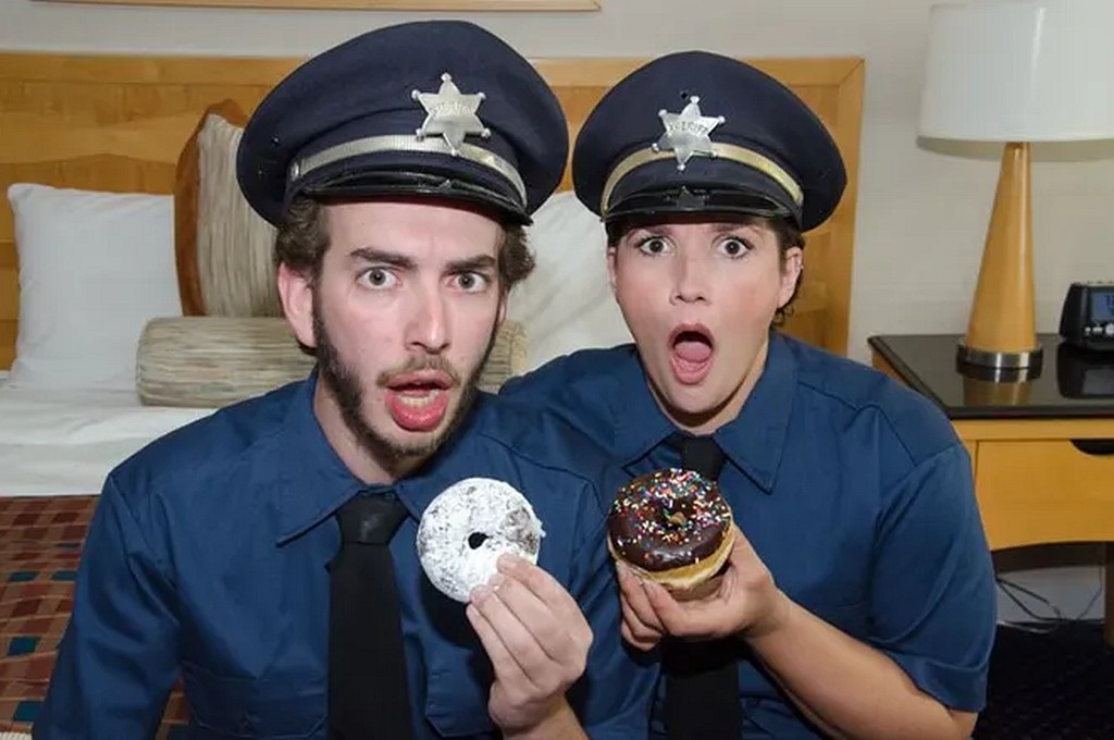(Non-donut scenes from various productions of Unnecessary Farce available from Google image search)