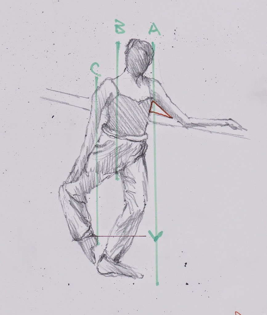 Students of figure drawing will also make use of a plumb line to find the vertical axis through the center of gravity of their subject and lay it down on paper as a point of reference.