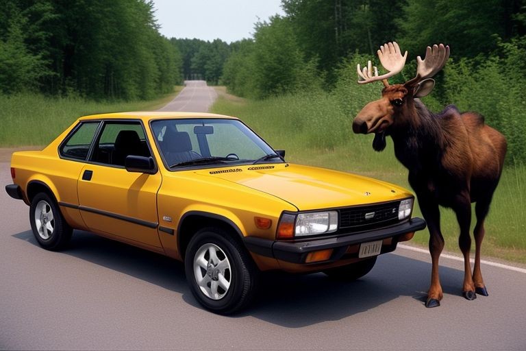 This time in my Austin Mini, in Eastern Alberta, I rounded a corner in a heavily wooded area and a moose that was about 3 times the size of the Datsun stepped out into the middle of the road and glared at me while I skidded to a stop in the loose gravel. After what seemed like an hour or so (about 10 seconds) he disappeared in an instant back into the woods. I don’t think I would have actually collided with him if I didn’t stop in time – I would have just driven under him.