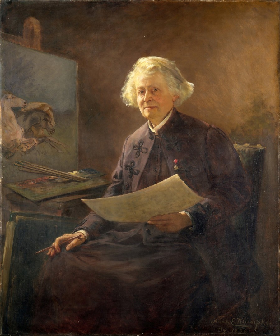 Edouard Louis Dubufe, Portrait of Rosa Bonheur 1857. Symbolic of her work as an Animalière, the bull was painted by Bonheur herself. – Wikipedia