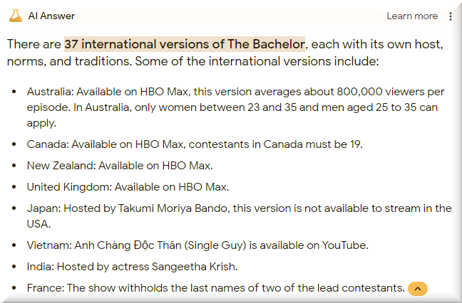 First, the countries that DON’T have The Bachelor
