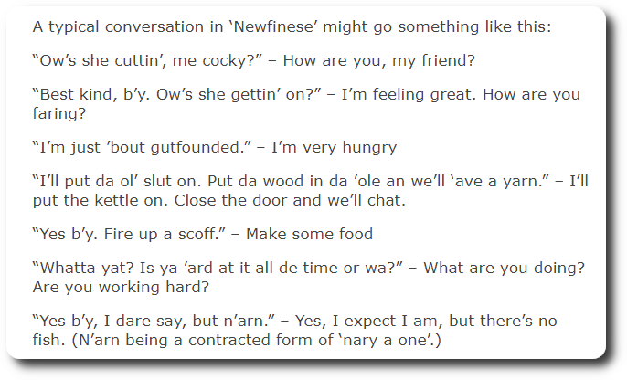- You can expect some difficulty communicating with our citizens in Newfoundland & Labrador (which is the actual name of the province, more commonly known as “The Rock”). Here’s a guide that will help you get started: https://encounternewfoundland.com/newfinese-101-words-and-phrases-youre-likely-to-hear-on-the-rock/ [2]