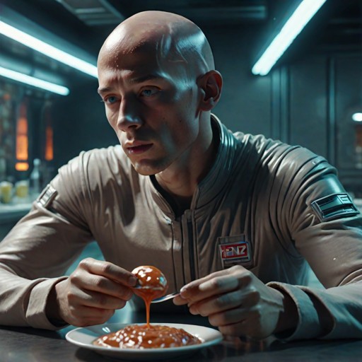 Still suffering from the late night hallucinogens he ingested at the “Policeman’s Ball” the night before, Todd struggled thru the sonic shower, did a quick depilatory sweep with the LazerRazer, gulped down a glass of Heinz Mealpaste and struggled into his anti-irad suit. What a day to be on decontam duty!