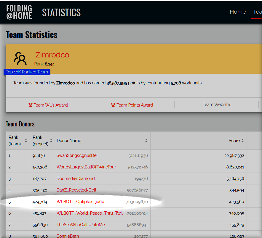 In those few short weeks, it has zoomed into 5th place for our team’s folding. (The folding project [https://foldingathome.org/] uses your spare computing power to develop new drugs to fight cancer, Alzheimer’s, COVID, etc). I’ve also been told that if you get up to the Pearly Gates and things are looking a little iffy, having a good folding score can put you over the goal line.