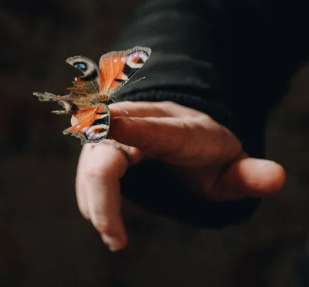 As they looked around they noticed a butterfly resting by one of the burnt out walls in the apartment. Its wings were singed, presumably from the fire.