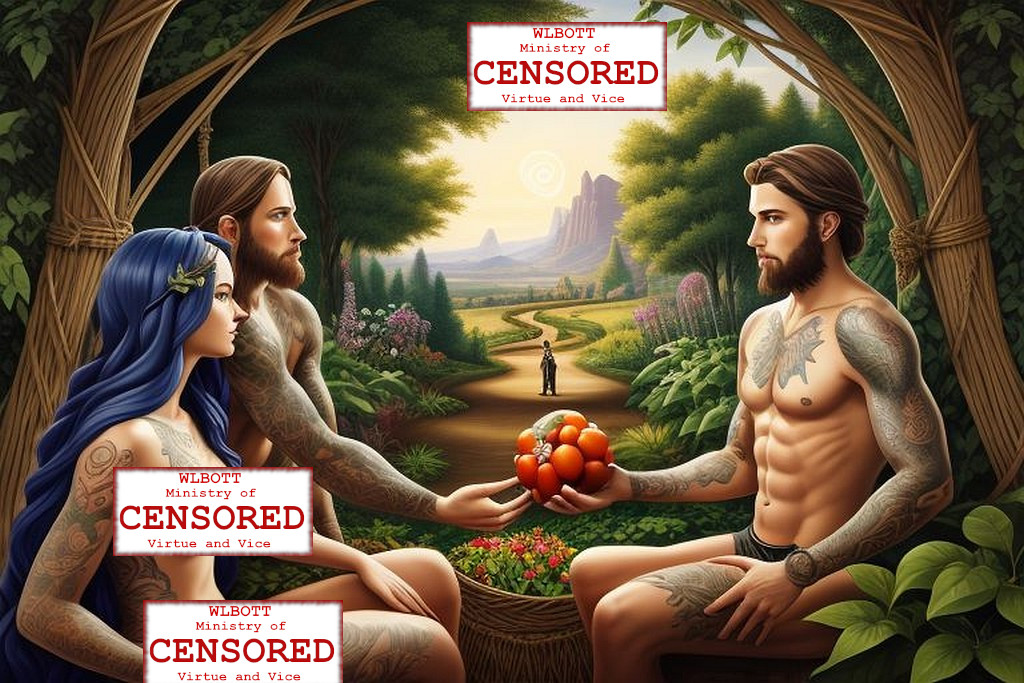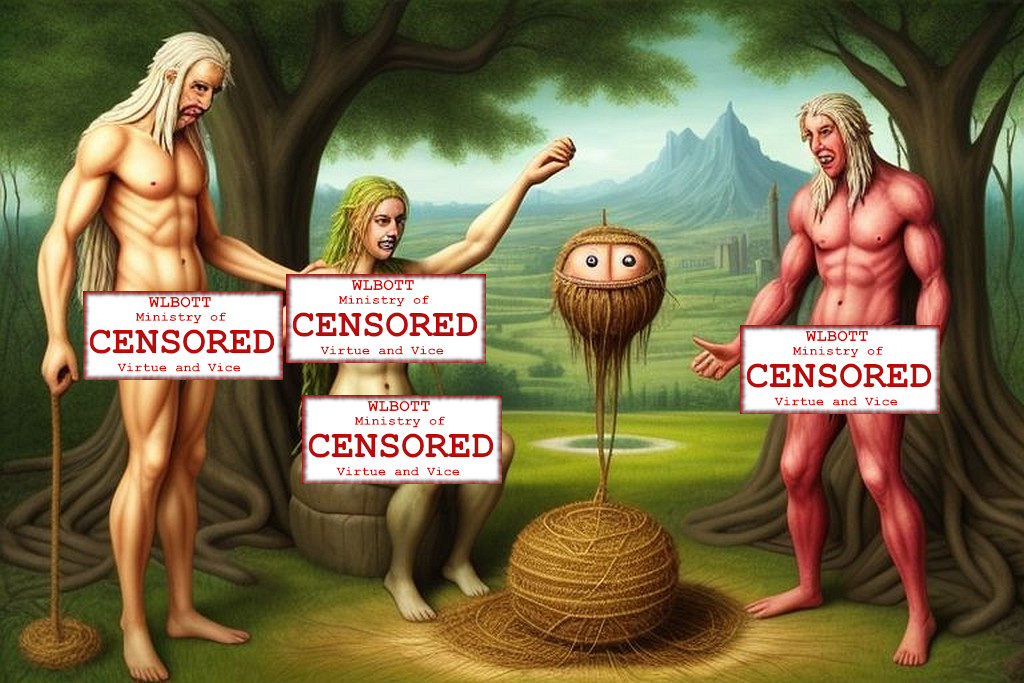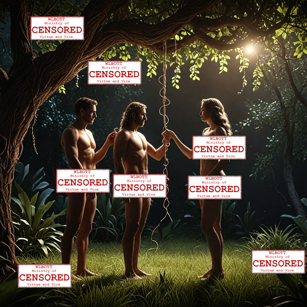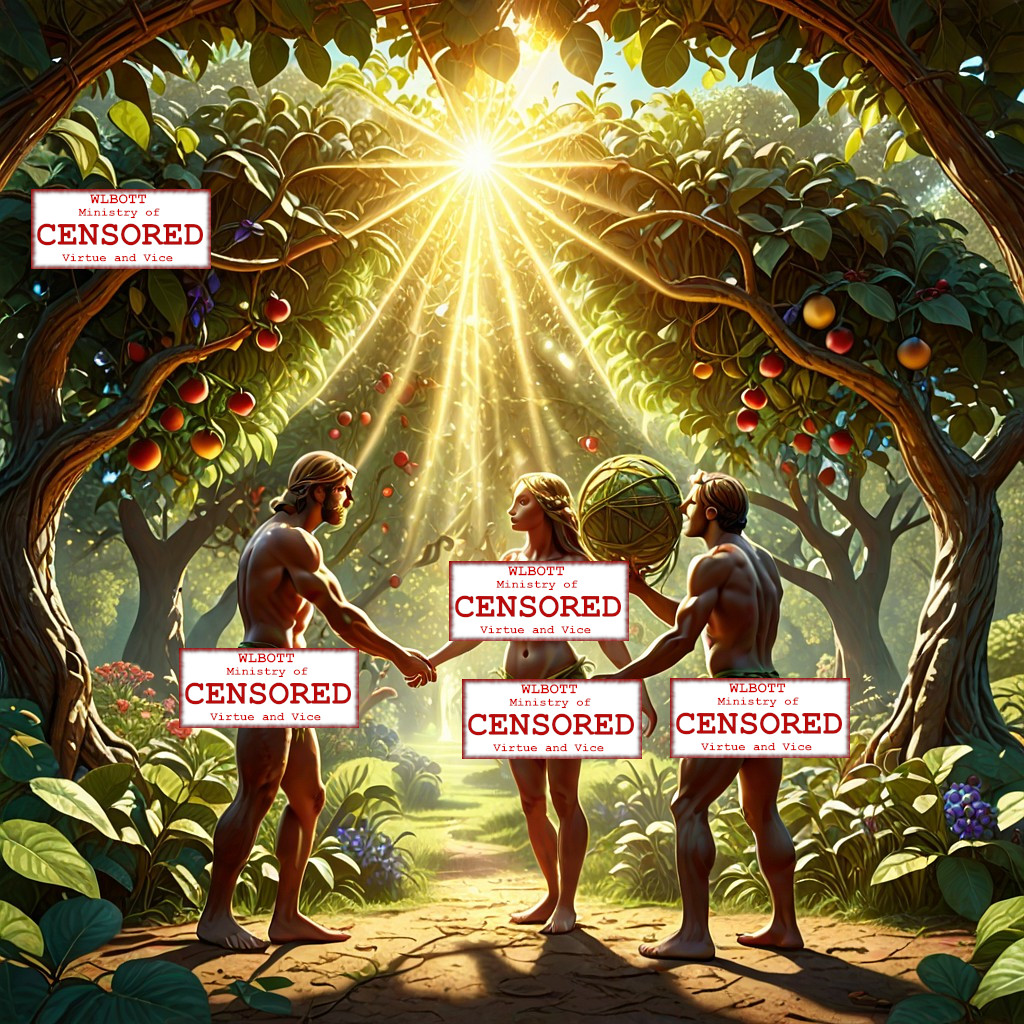 [ed. note: WLBOTT wishes to provide our views with a PG-13 experience, and we have instituted an internal WLBOTT Ministry of Virtue and Vice to safeguard our precious content. Therefore, we must sometimes censure portions of AI images that violate our standards. “You have standards?” you may ask. That is a different discussion]