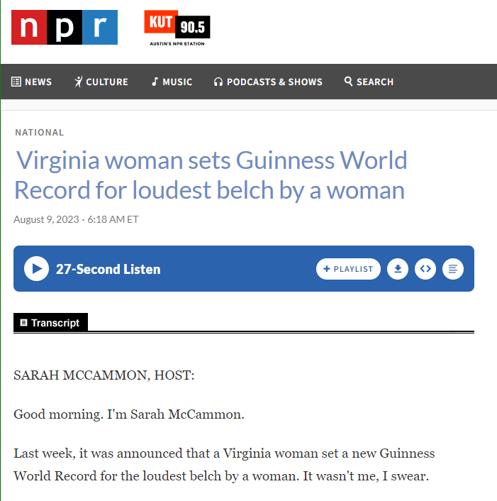 for the loudest female belch.