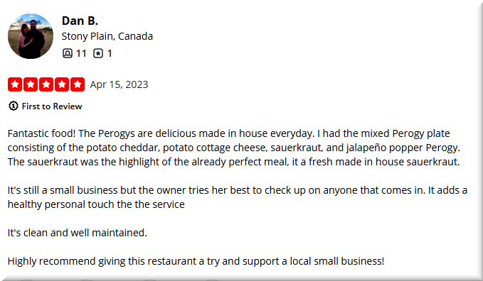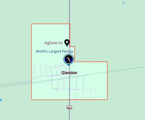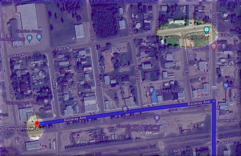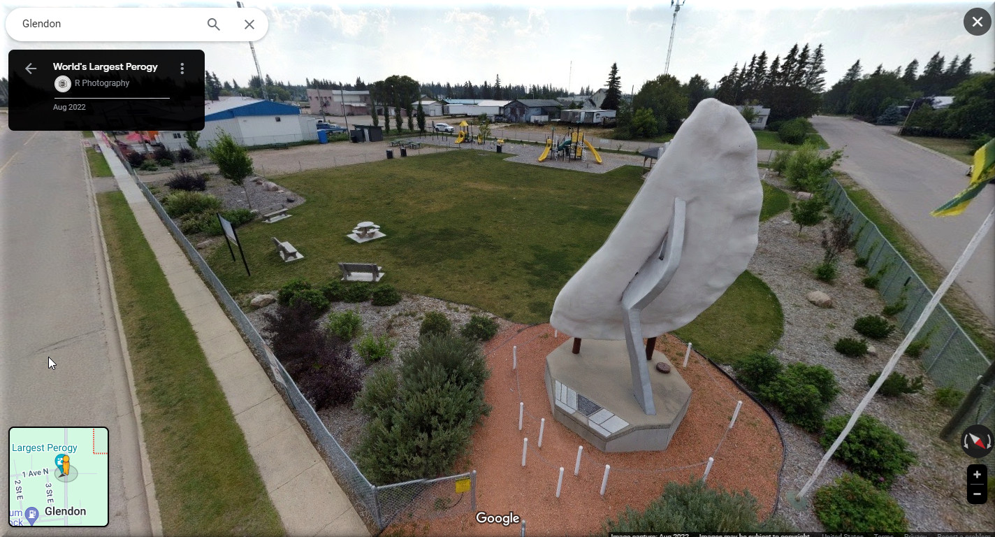 I suggest that we combine it with a visit to the World’s Largest Perogy, in Glendon, AB (population 338).