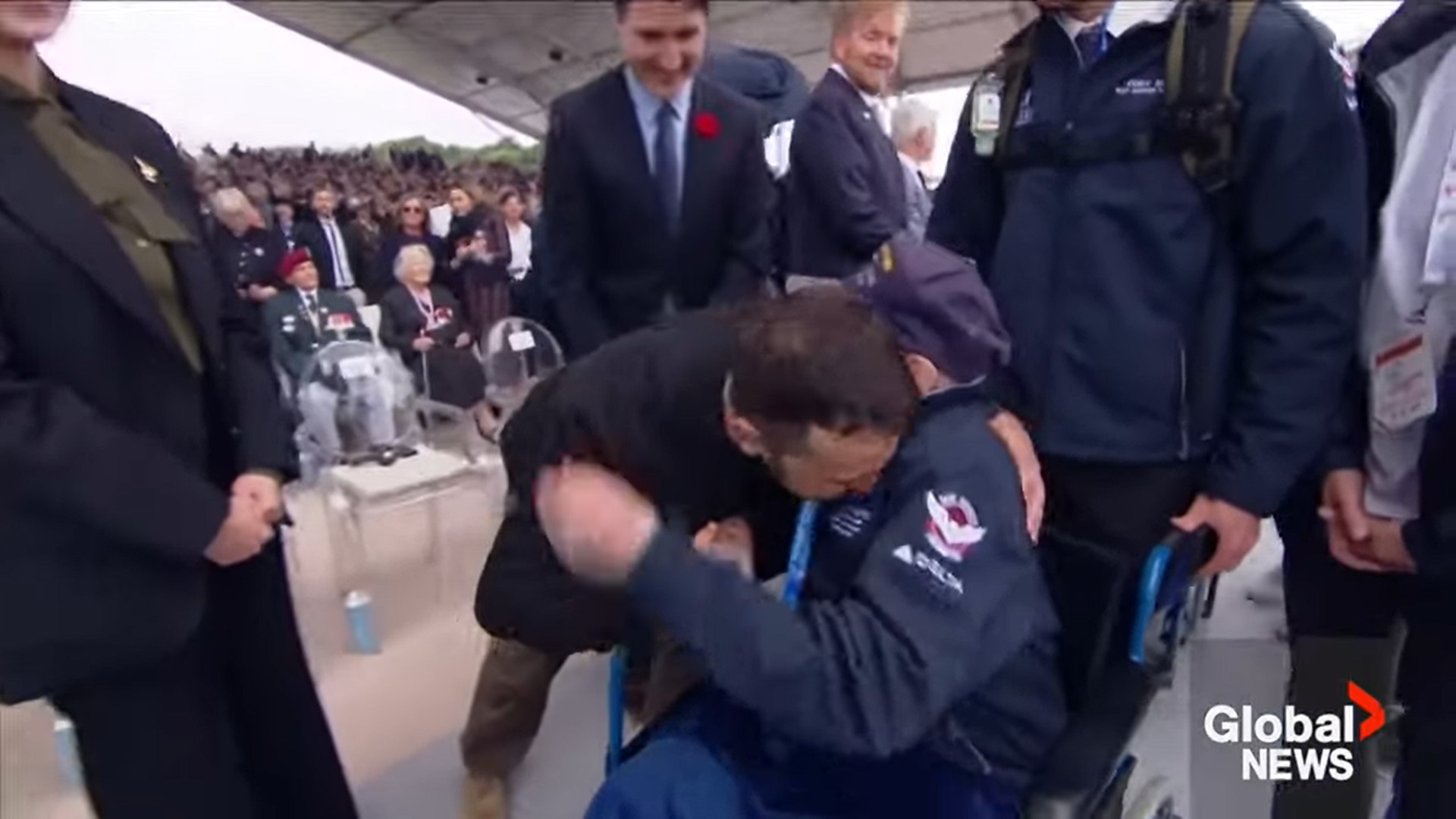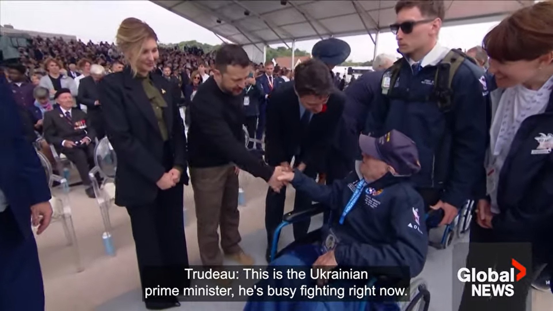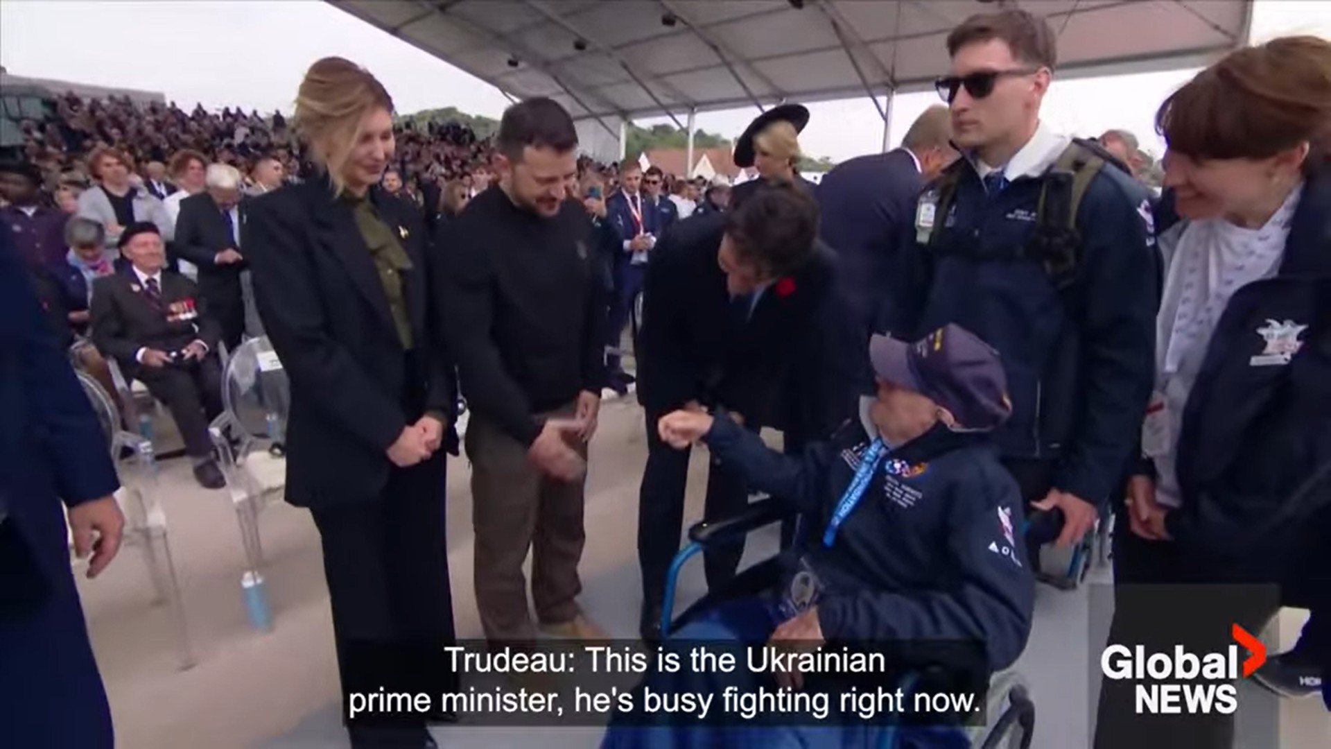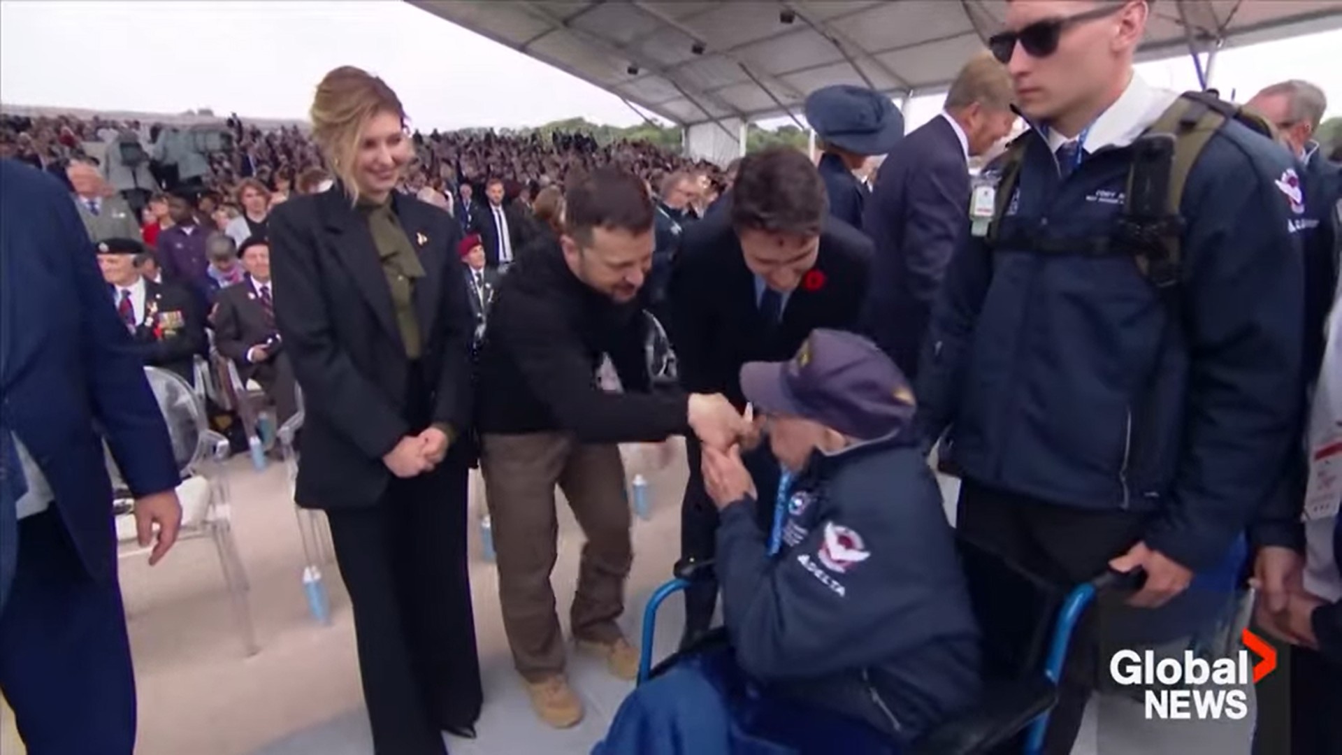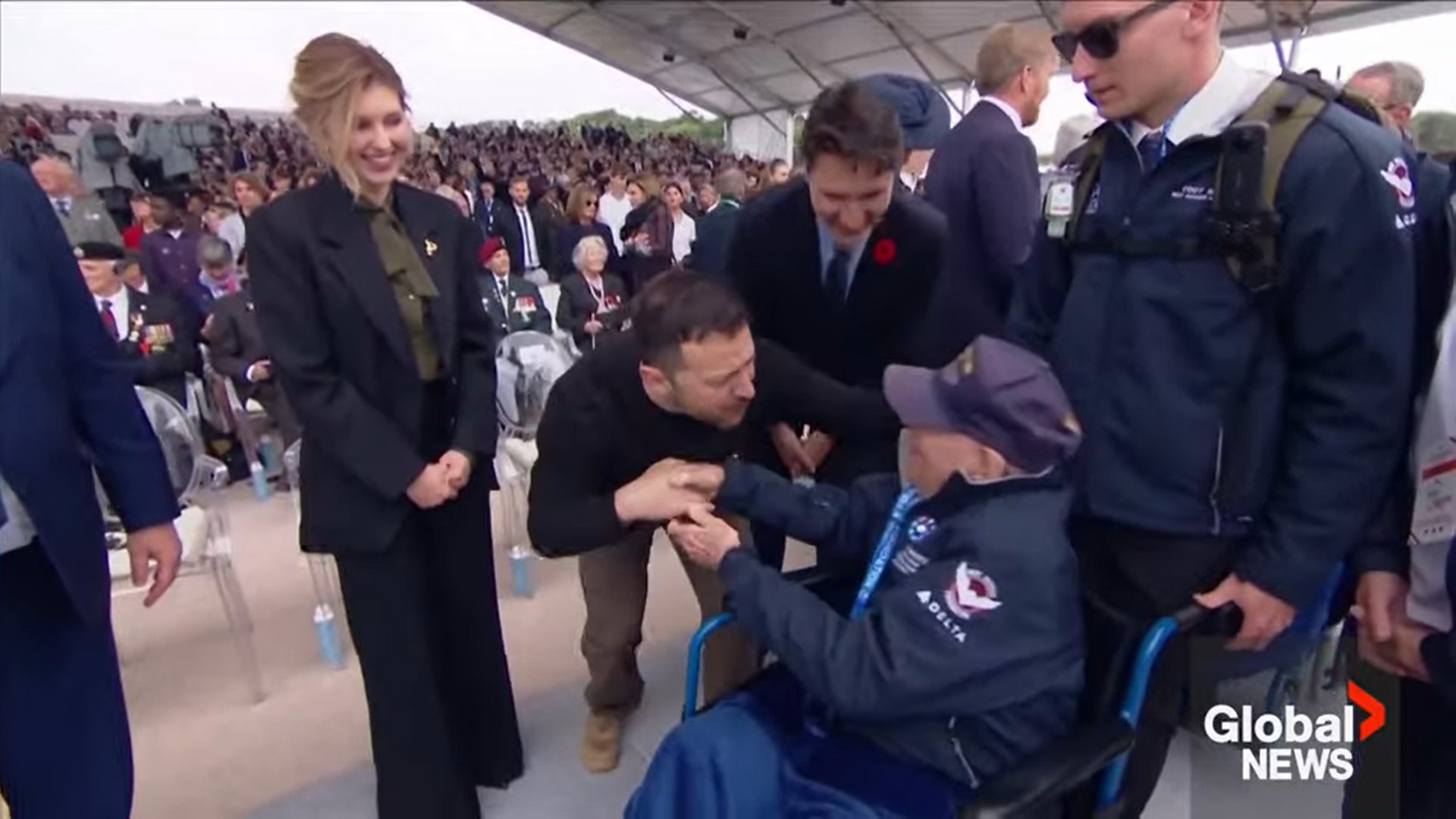Ukrainian President Volodymyr Zelenskyy shared an emotional moment with a veteran during a D-Day ceremony in Normandy, France on Thursday.