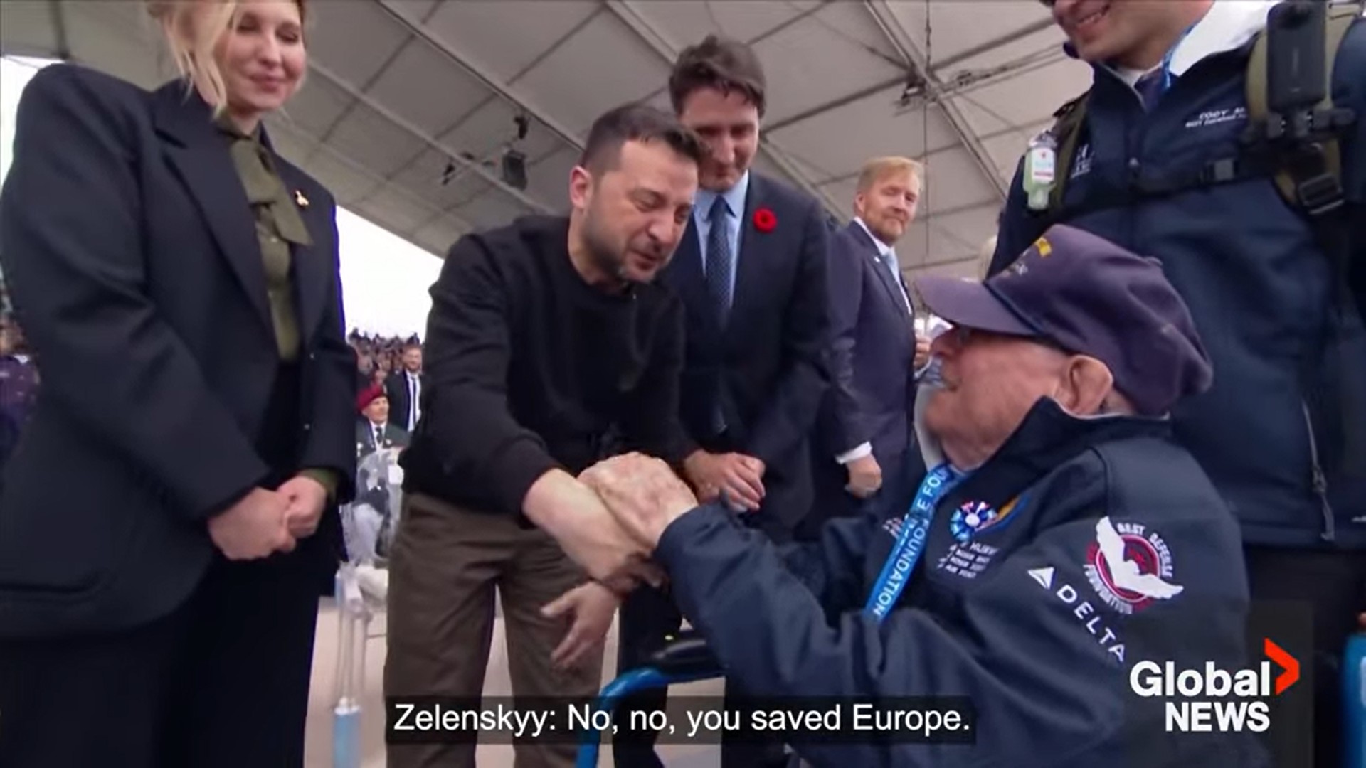 The veteran, who also met Canadian Prime Minister Justin Trudeau, kissed Zelenskyy’s hand and told him he was the “saviour of the people.”