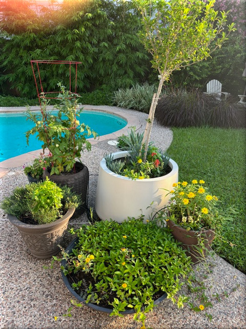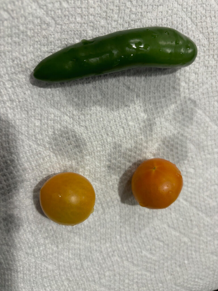 Gentle people – We’ve been lucky with lot of rain in Houston, so plants are doing great. In the edible department, I have: