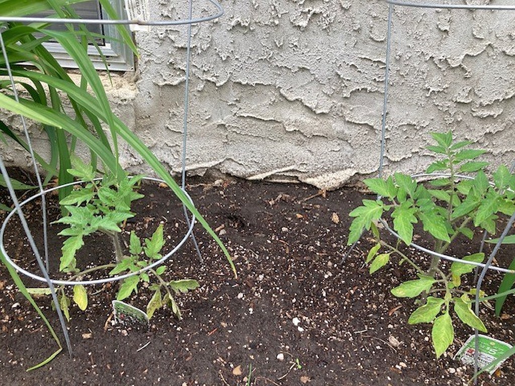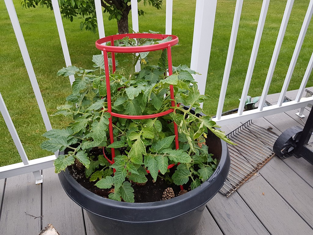 The only plant we named is Iris. The Cedars are the elite honour guard defending our patio from the ravages of the back public walkway. The scraggly looking tomato plants are a cherry and two beefstake (mistakenly labeled beefeater). And of course, SU’s staple, Rhubarb.
