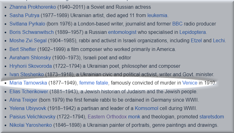 Maria Tarnowska died on 23 January 1949 in Santa Fé [Argentina].