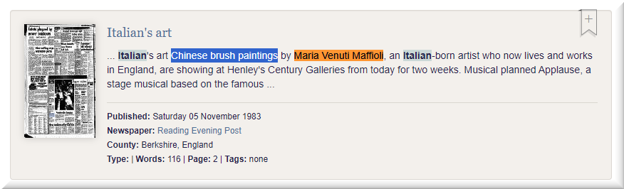 It appears that the Baroness recently return from an art gallery by Maria Venuti Maffioli. Ms. Maffioli was an artist known for Chinese brush paintings. Virtually nothing on the web (we didn’t try very hard).