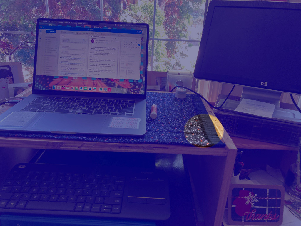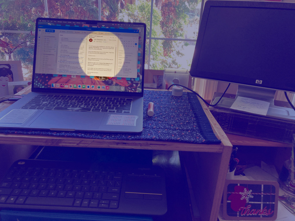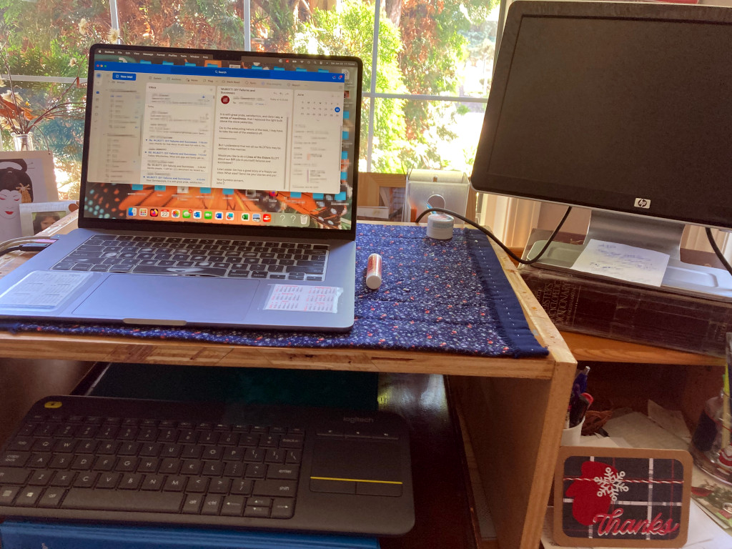 So now, my laptop screen Is straight ahead, and my arms are straight out from my body to type. The keyboard is a little different from my Mac, but I guess I’ll get used to it soon!