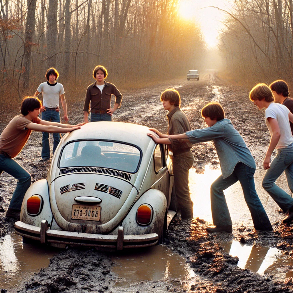 When I was around 14 years old, I was summoned on weekend morning at our house on [undisclosed location] by UC#4. A friend of his had gotten his VW stuck in the mud deep in the woods. I believe the location was known for teenage intimacy and/or for smoking wacky tobacco and drinking beer. UC#4’s friend gathered up 8-10 guys and we went out into the woods and picked up the car and moved it onto dry ground by hand. The ‘stuck’ person waved and went off into the early morning sun.
