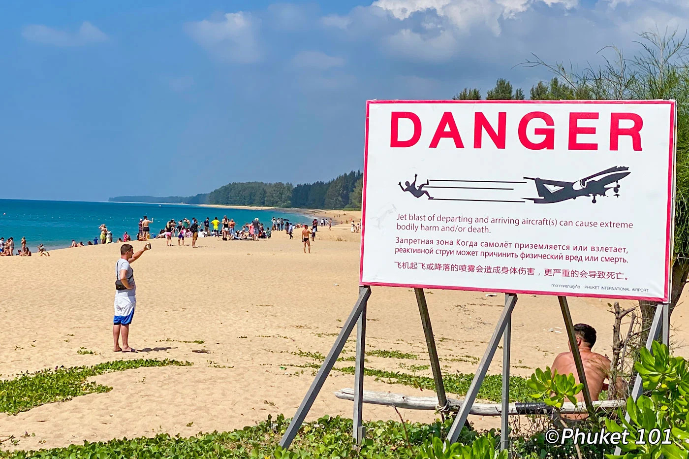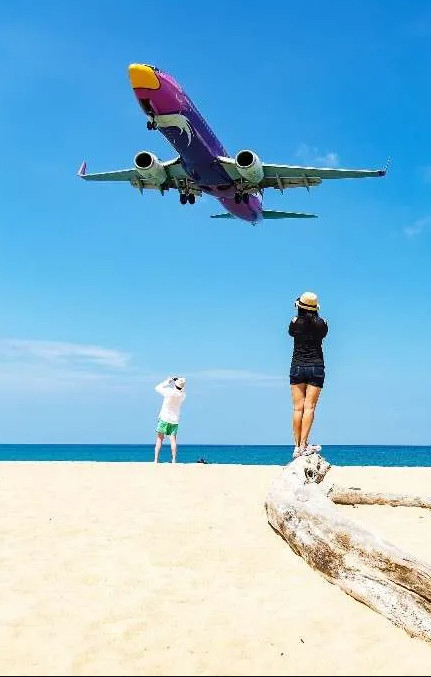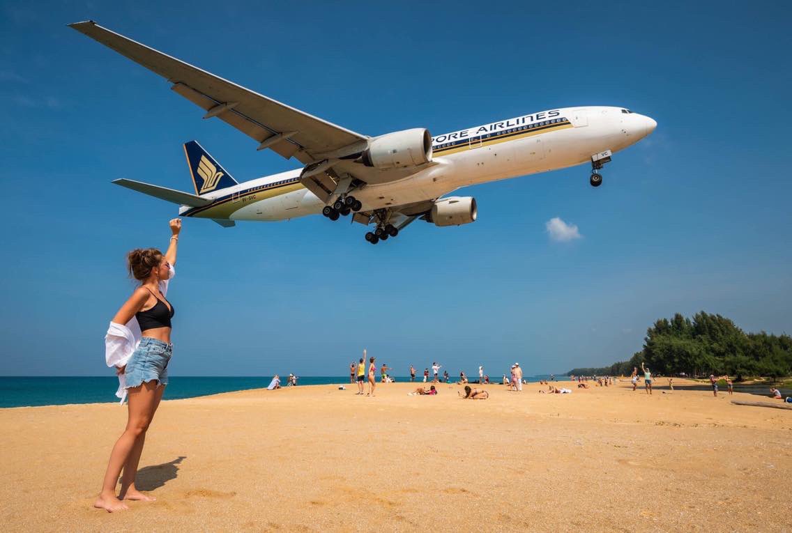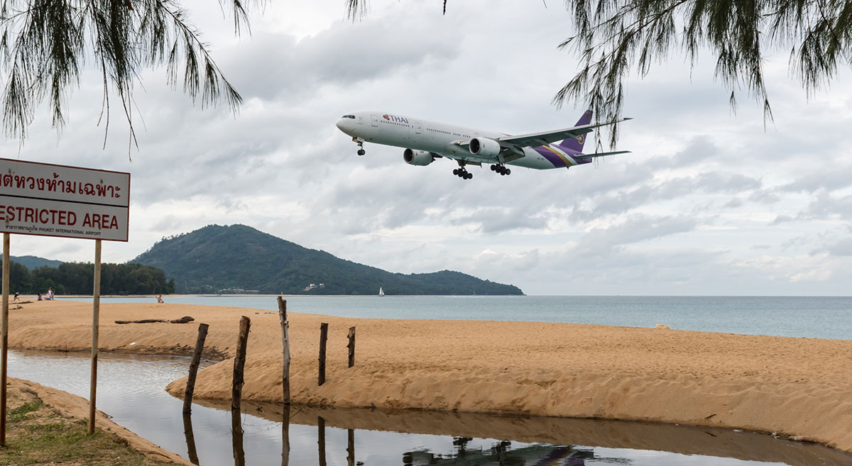 Plane spotting is a popular activity on the beach adjacent to the Phuket International Airport.