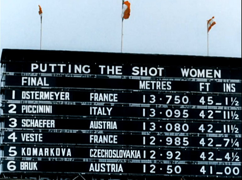 The 1948 Summer Olympics were Ostermeyer’s finest hour as an athlete. She won gold medals in the shot put and discus throw (despite having picked up a discus for the first time just a few weeks before the event), and a bronze medal in the high jump. She is the first French woman to win an Olympic medal in athletics…. After winning the shot put, Ostermeyer concluded the day with an impromptu performance of a Beethoven concert at her team’s headquarters and a concert at Royal Albert Hall.